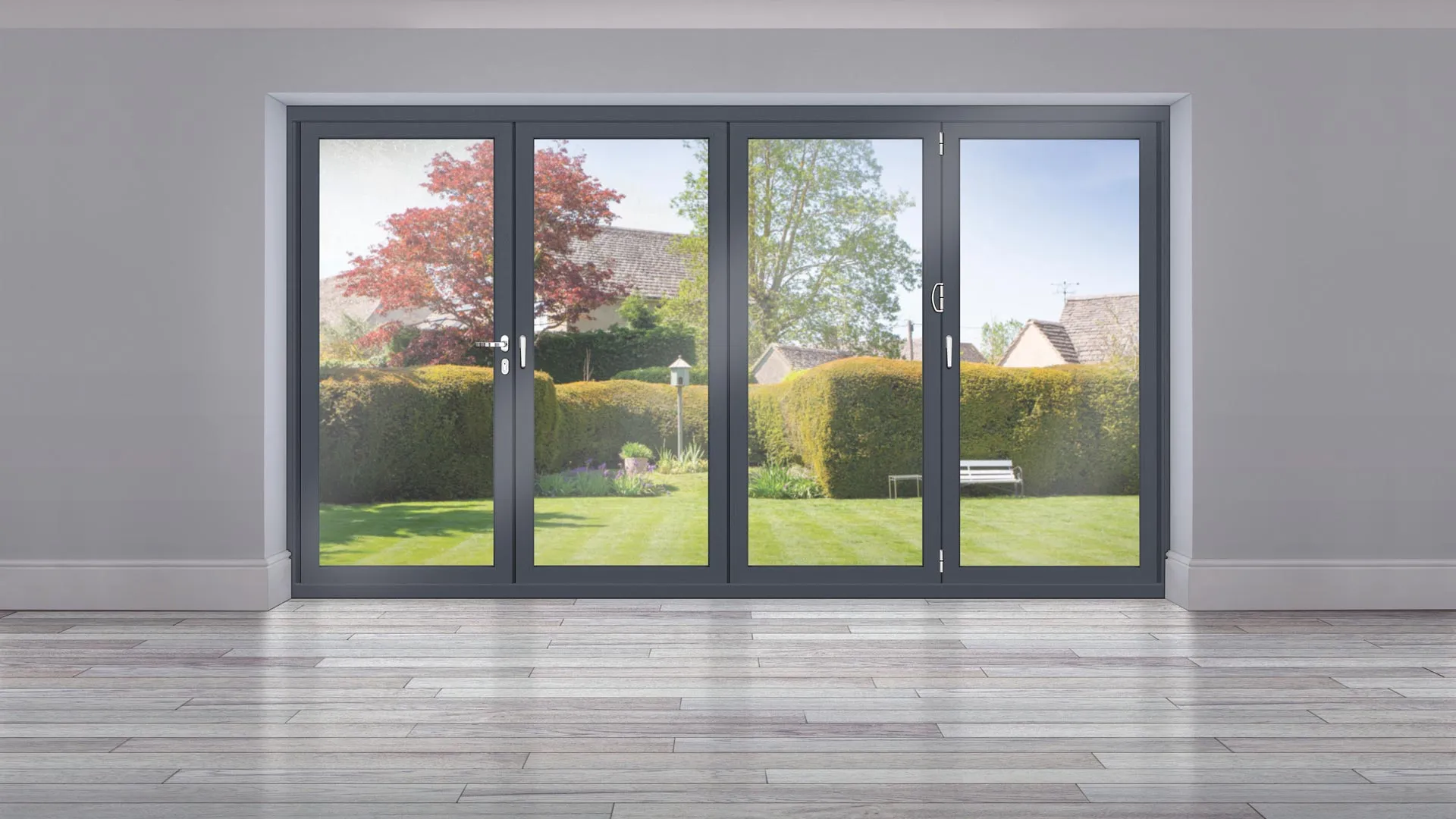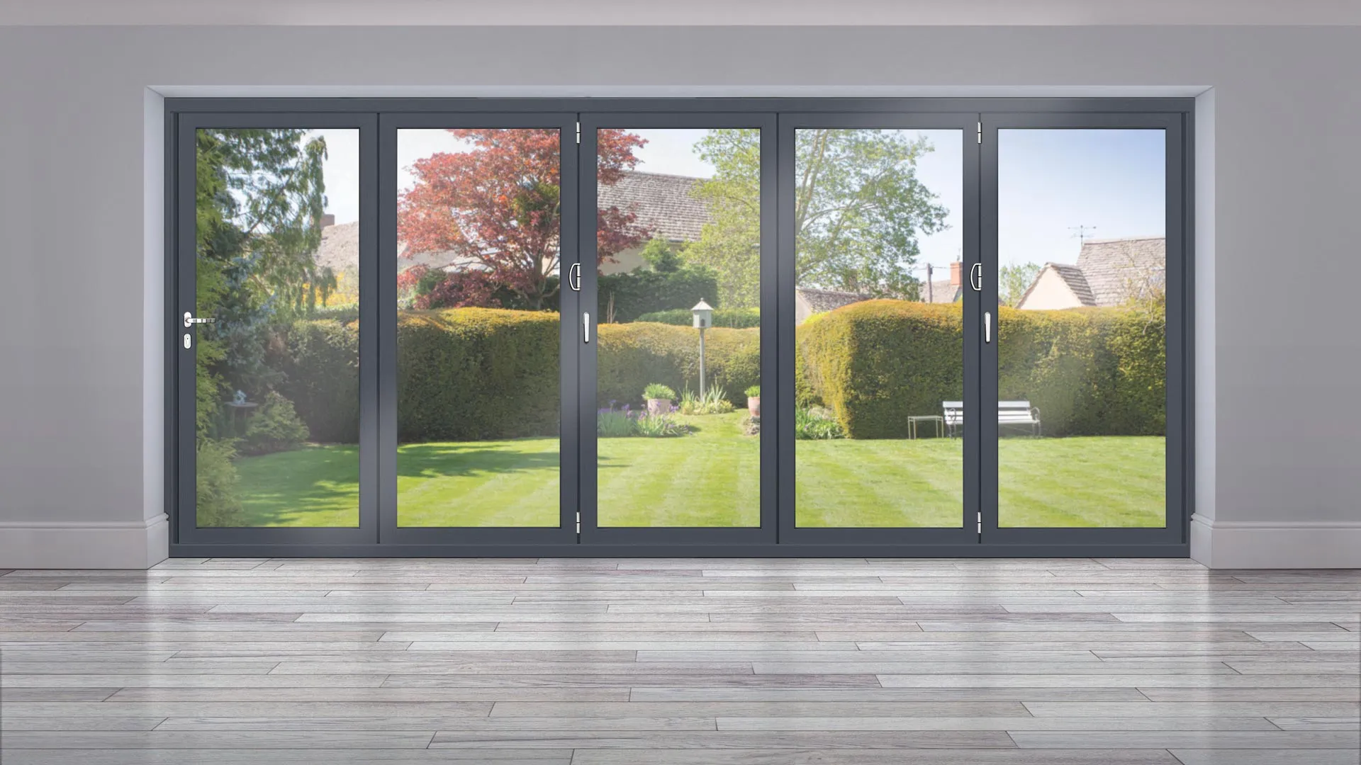 Origin Bi-Fold Doors come in nearly any colour you can imagine, from classic black and white to contemporary greys. With over 150 RAL colours available and a dual-colour option for different interior and exterior finishes, you can tailor the doors to perfectly match your style. Additionally, Origin offers a range of woodgrain finishes.